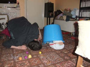 Tomorrow Tori will be one day older and might not want to hide under the washing basket.
