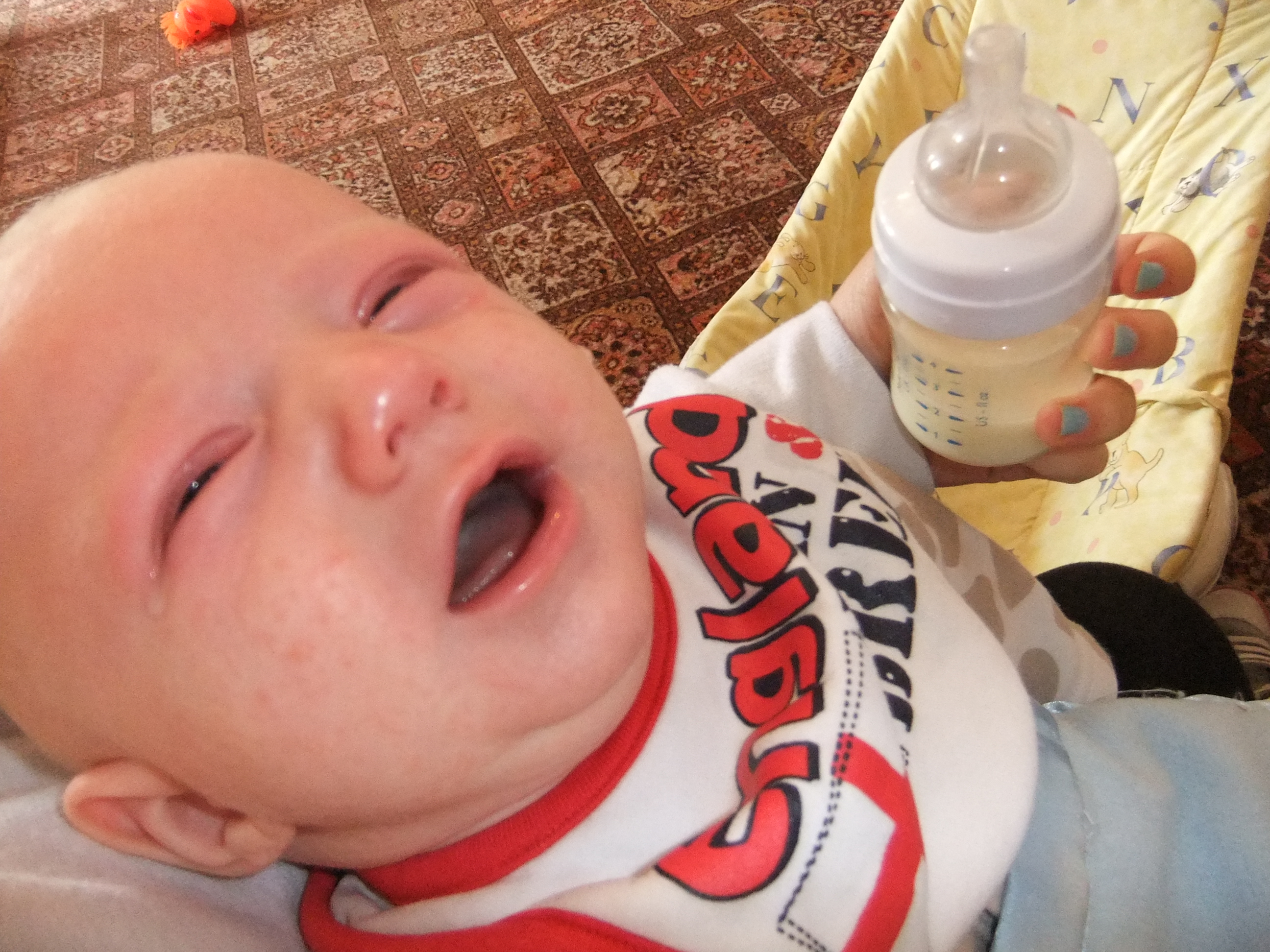 By this point Tori was yelling at me because I was making Baby cry and I was feeling like the worst mother in the world. Arthur went to sleep. I went and washed up to calm down and decided to try again when he woke up. By that point he should be really hungry and less inclined to reject the evil plastic teat.