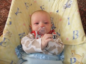 When he woke up he instantly whined – clearly hungry (and I don’t blame him). So I offered him the dummy and eventually he stopped spitting it out and sucked it. He looked very odd…
