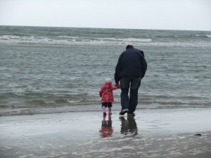 Tori had her first ride on a donkey (she wasn’t sure about it), her first go on a bouncy castle and then a big paddle in the giant ‘Splish Splash’ (which she was rather reluctant to leave) and she seemed to have fun making footprints in the sand and picking up shells and ‘pretty stones’ (fairly dull pebbles).