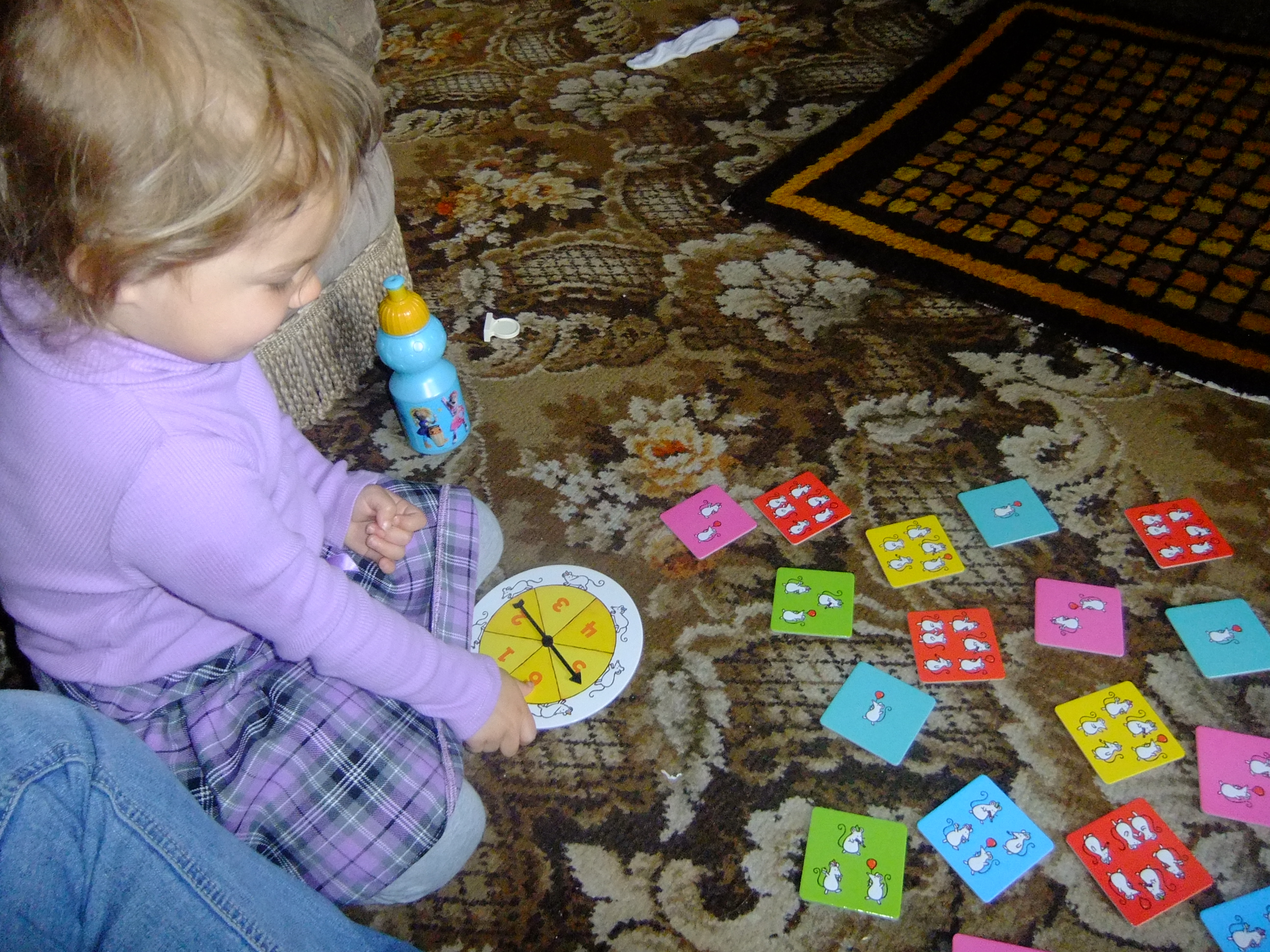 The game included a simple spinner and 24 brightly coloured cards that were sturdy enough to withstand an overenthusiastic two-year old playing with them.