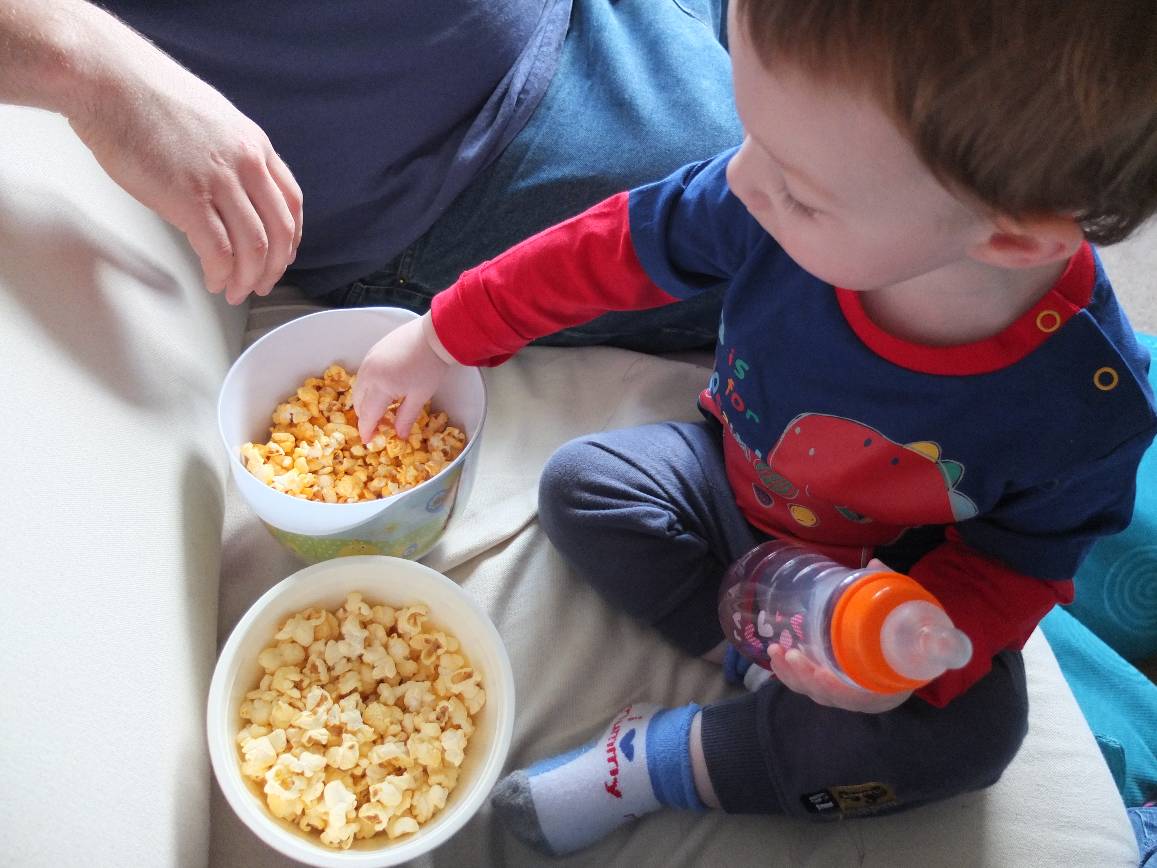 We eventually managed to turn him around and reposition the popcorn so he could see the film as well as stuff his face. Tori took a liking to the Cheese & Chive flavour but Arthur, Caius and I all prefered the Smoked Paprika. Not that Caius and I got much, because Arthur soon had the bowl in his lap and protested loudly if anyone stole any – you were allowed some, but only on his terms (namely you were fed pieces one at a time, very spread out!)
