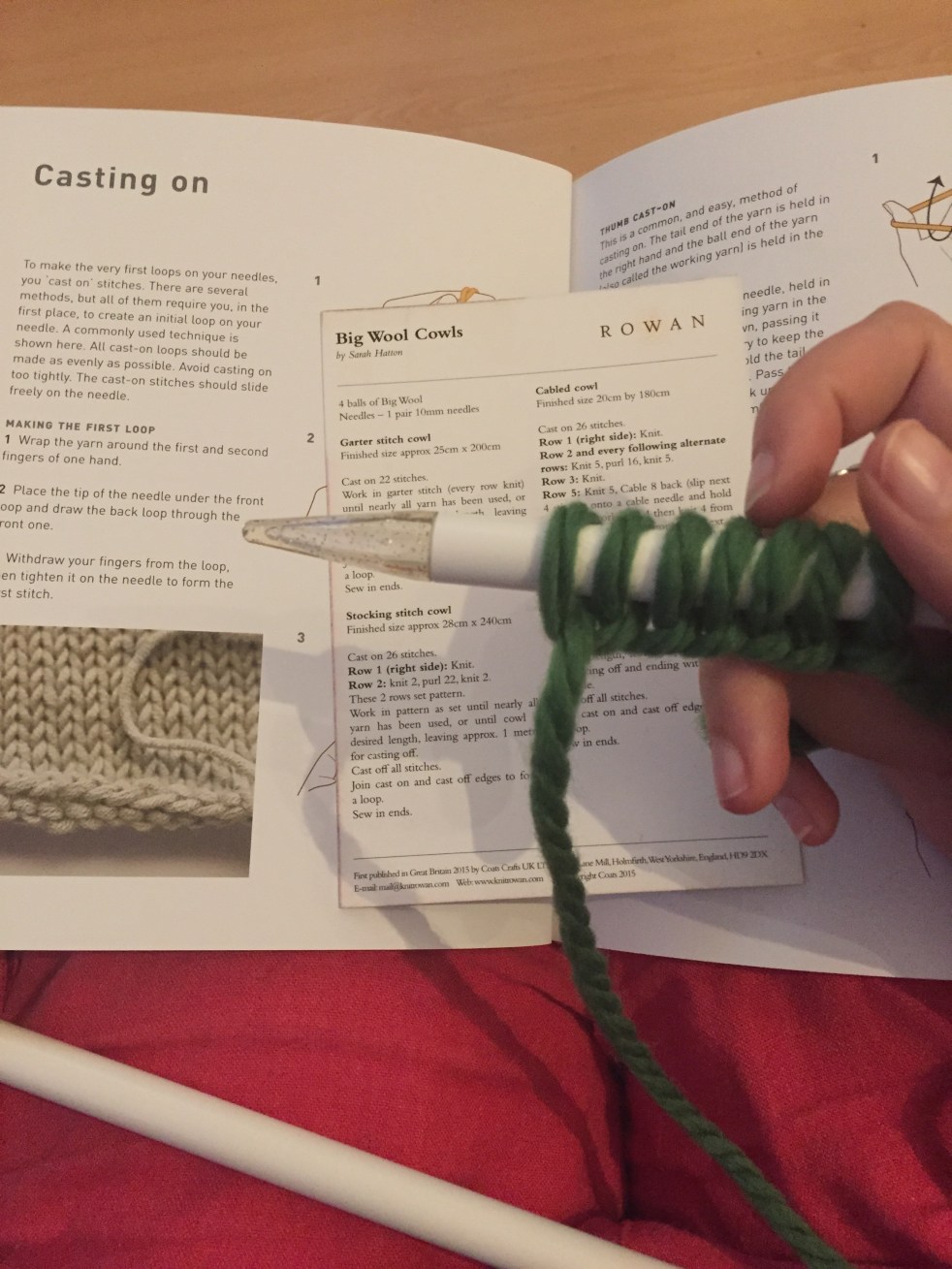 Coats Craft armed me with this gorgeous Rowan Yarns Big Wool (in Pine Needle), some glittery knitting needles, a how-to book and a super easy pattern for a scarf/cowl.