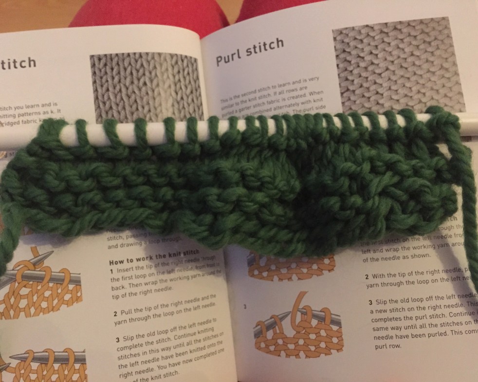 This is definitely going to take some practise! However I did end up with what looked like a piece of knitting. It is wonky and uneven but I did it all by myself and I’m sure I’ll get better as I do more.