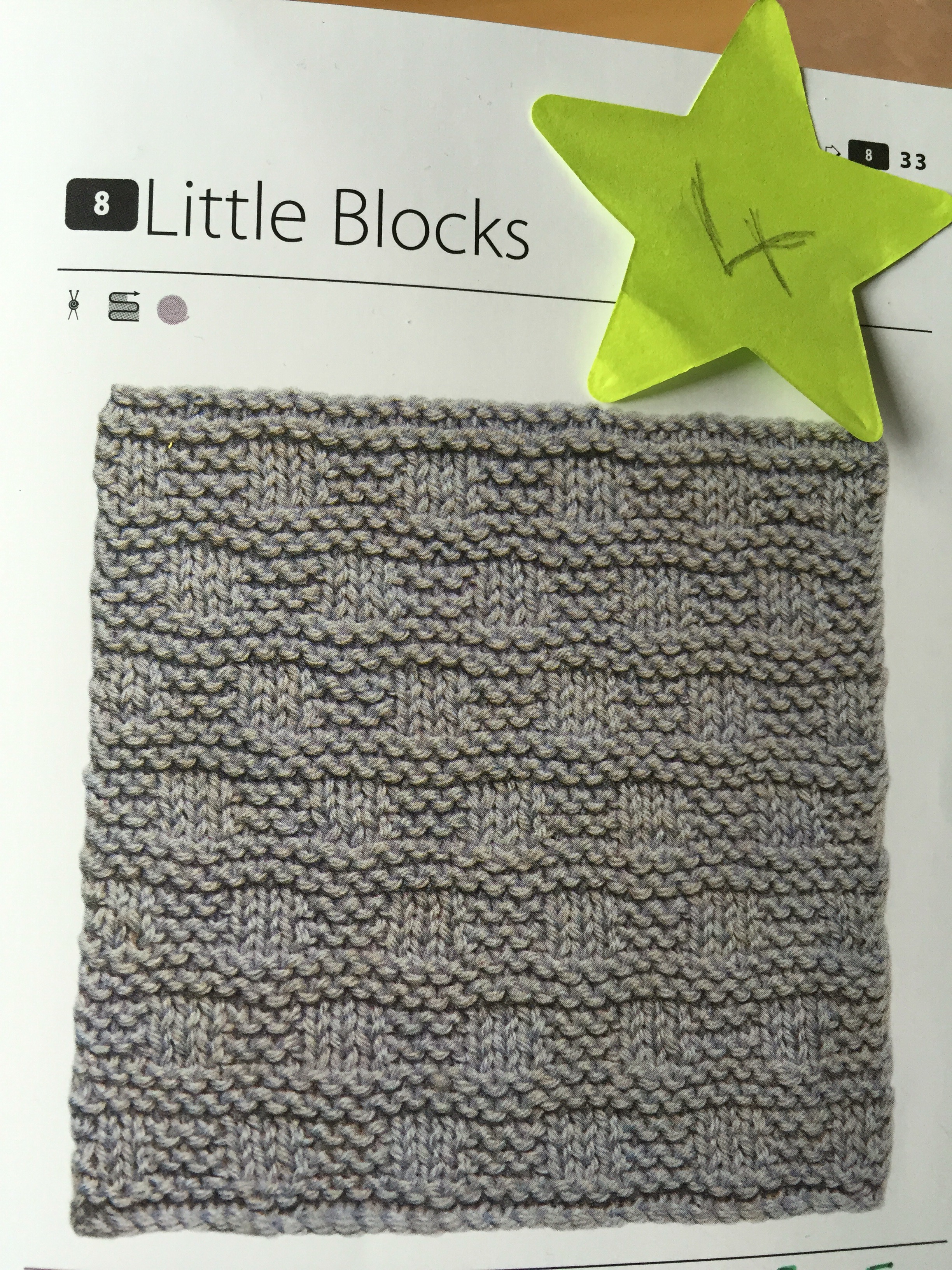 For my Week 4 (22nd-28th) square I decided to try another texture pattern of ‘Little Blocks’ – I really struggle with switching between knitting and purling in the same row for some reason. I often end up in a horrible messy muddle, so I thought I’d give myself a bit of a challenge.