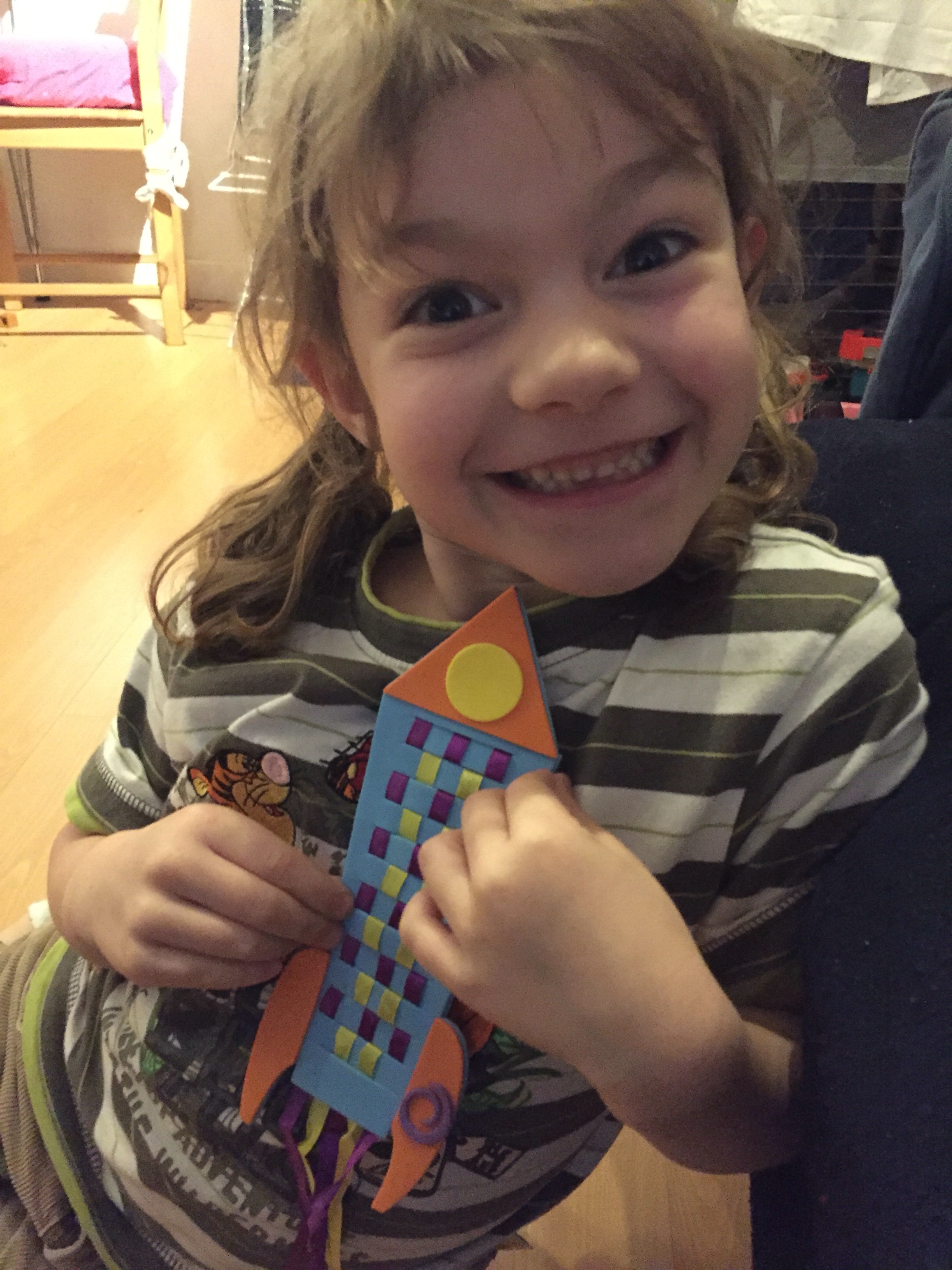 29/366 Tori wanted to do some crafting this evening so I helped her make herself a new rocket bookmark.