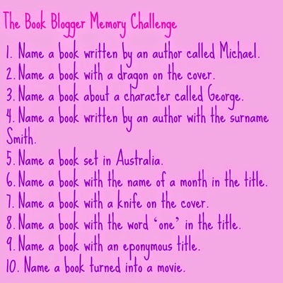 So, I was stumbling around the internet a bit aimlessly the other day and came across this Book Blogger Memory Challenge – I have no idea where it started but the image was apparently posted in 2014 so it’s done the rounds a fair bit I expect.