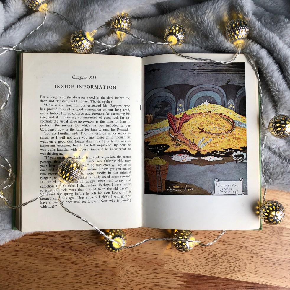 What surprised me most about re-reading The Hobbit was just how much I had forgotten. I thought the Smaug showdown was the big ending, but it absolutely isn’t (and also, I had a whole bit in my head about a golden bracelet on the dragon’s arm that I would have sworn was Bilbo/Smaug that didn’t exist at all so now I’m trying to work out which book I have amalgamated with it in my head…)