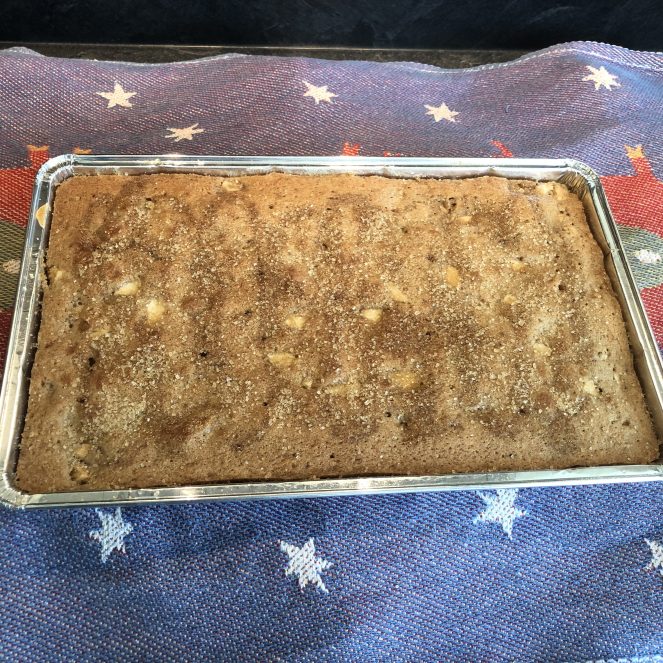 Generously drizzle the top of the cake with Maple Syrup and sprinkle with Demerara sugar, then allow to cool before cutting and serving. (The holes you poked make sure the syrup soaks into the cake instead of just puddling on the top!)