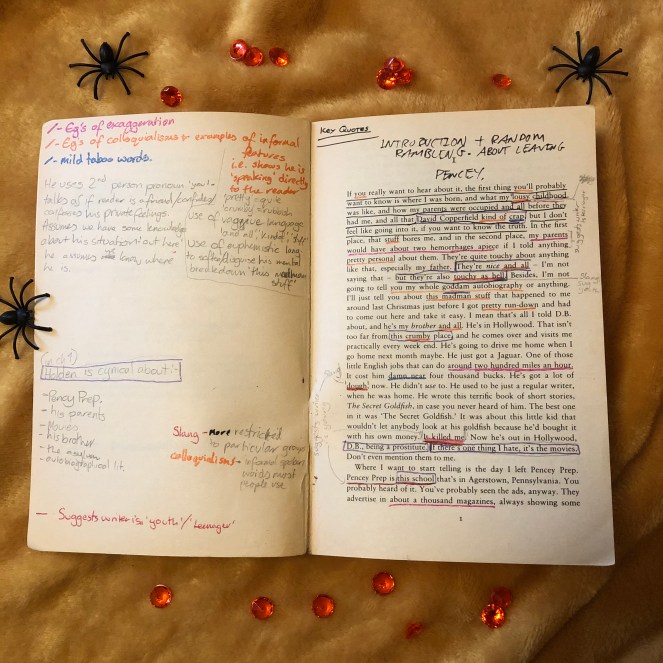 Yes, I am aware how well-thumbed my copy of J. D. Salinger’s Catcher In The Rye is for a book I wish I’d never read, but it isn’t through choice. It was my GCSE English exam text so it was read multiple times and is annotated throughout in every colour under the sun. (It is also full of random doodles and messages from my boyfriend of the time – generally informing me of how dull the book is!)