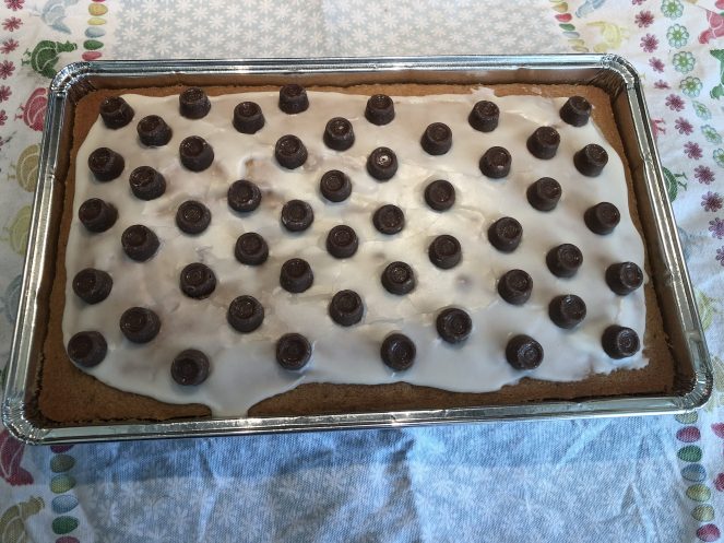 This little number is lots of fun – a rolo sponge topped with caramel flavoured icing and even more rolos!!