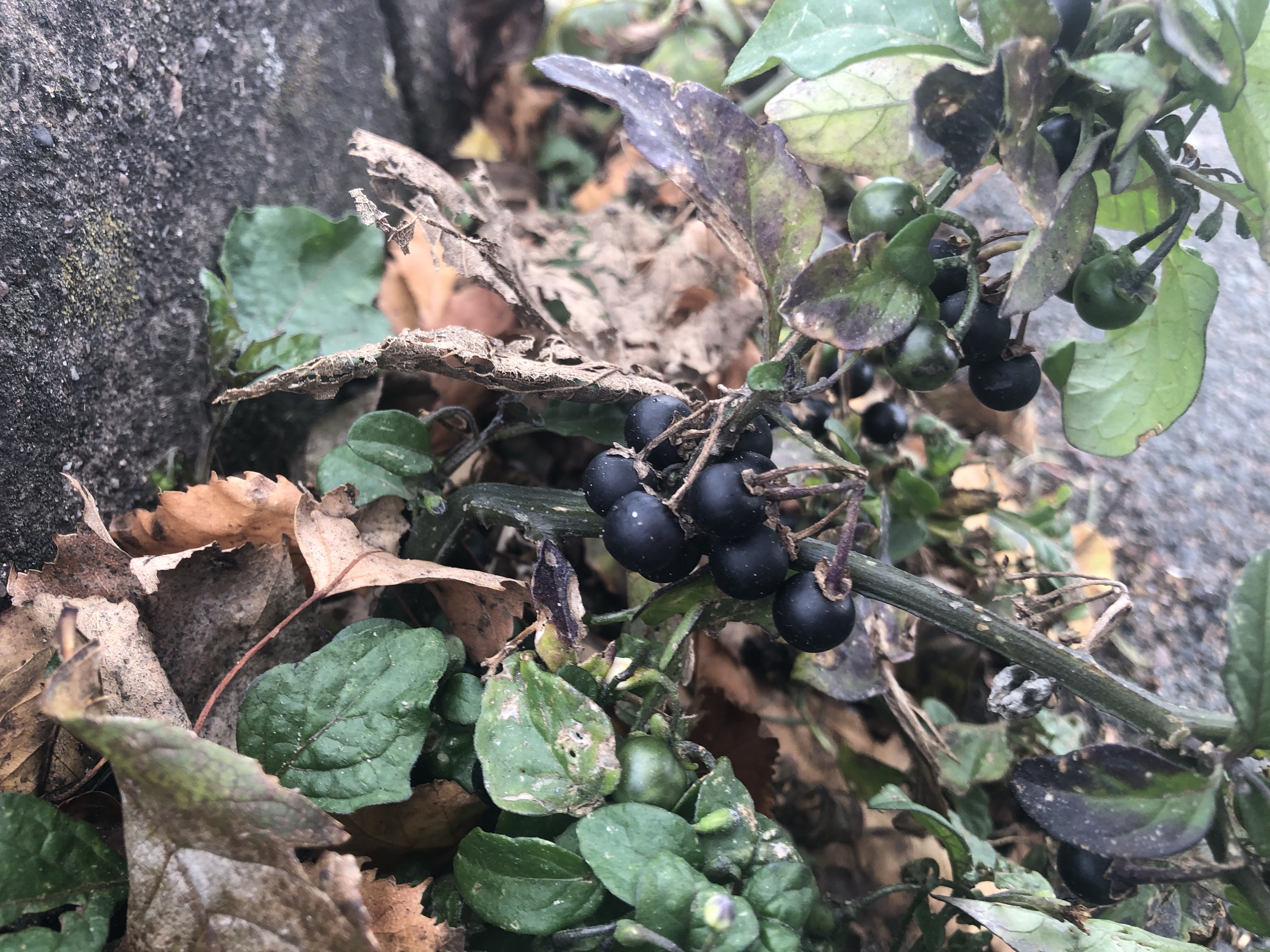 I am pretty certain it is in the nightshade/potato/tomato family, because of the shape of the flowers, and the appearance of berries this last week.