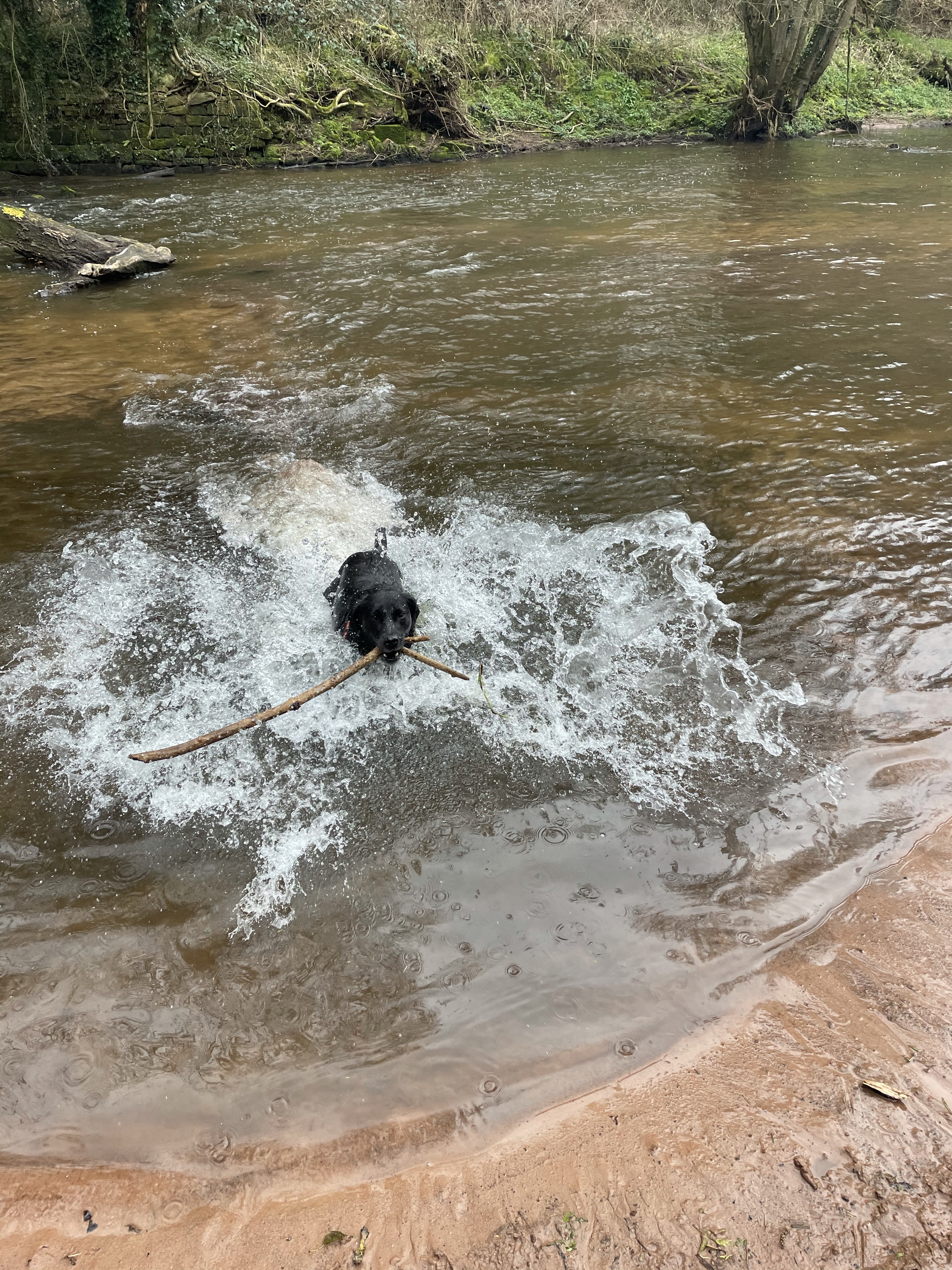 We saw lots of wildlife and birds, from a tiny vole, to a fox on the prowl! Sunsets & rain storms, collected many (large) sticks, Jet rediscovered the river, and we both got really quite muddy!
