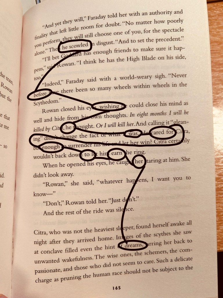 The first book was Scythe by Neal Shusterman, and this was the Page Poem I managed to glean from my random page… (yes, for anyone who has read it, that word choice was deliberate. You know I can’t resist word play.)