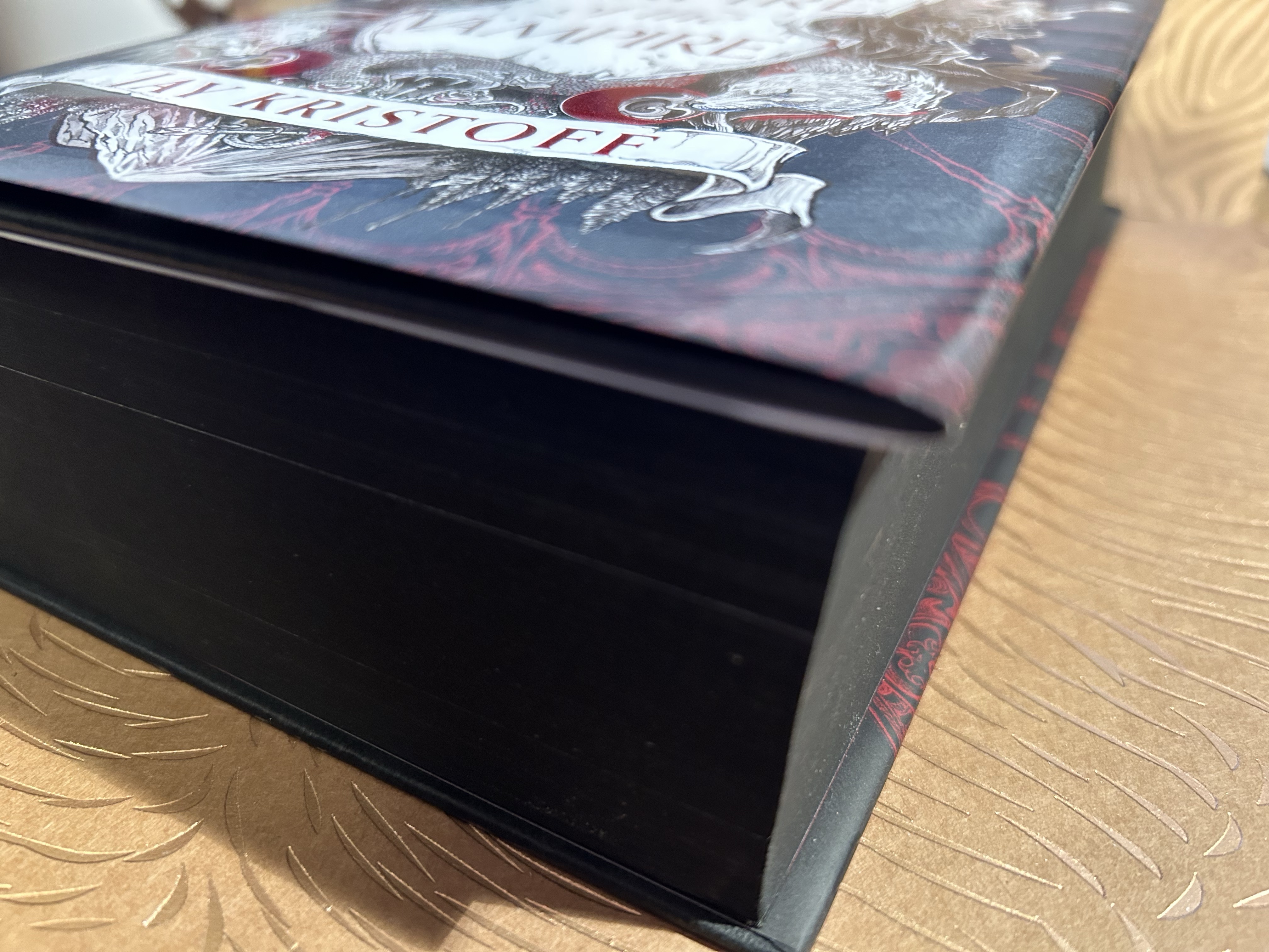 Okay, let’s pick one of my favourite black book covers (on a book I haven’t actually read yet… but shush, that wasn’t a criteria) which actually leans in really hard to the whole black cover thing by having black sprayed edges as well!