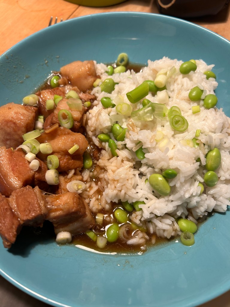 Last week’s efforts were met with mixed reception. I think I was the only one who particularly enjoyed the Ginger-Braised Belly Pork dish (first picture), but the Lasagne-Style Pasta and the Ham and Sprout Pasta both went down well all round. However the clear winner of the week was the Slow-Cooked Meatballs with Cheesy Mash (Pictures 2 & 3) which everyone loved and have requested to become a regular on the menu.
