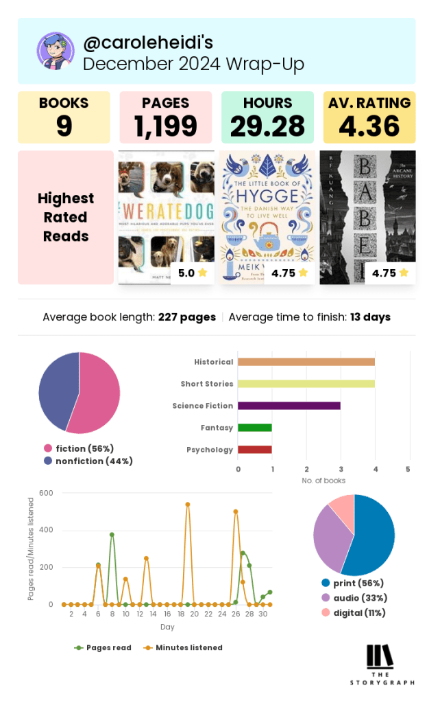 It took a bit of intense audio-listening, and a couple of super short easy-reads but I finished 52 books in 2024!