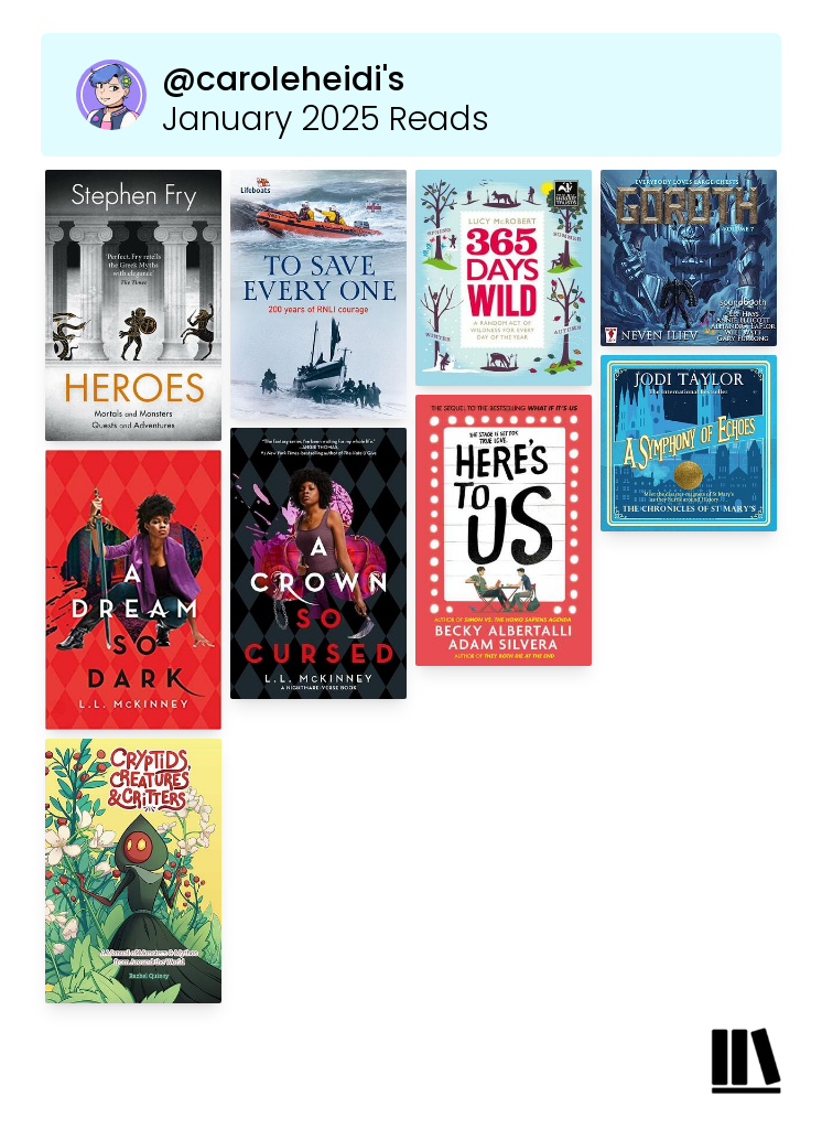 Heroes is one I originally started probably in January 2024 or something silly, but it got put down and forgotten despite me really enjoying it. So I started it over just before Christmas, both reading the physical book and listening to the audiobook as well – occasionally both at once! I love listening to Stephen Fry, so I find the audiobooks a delight – however the actual book has pictures which is always a win. By dipping in and out of both, I got all of my favourite things!